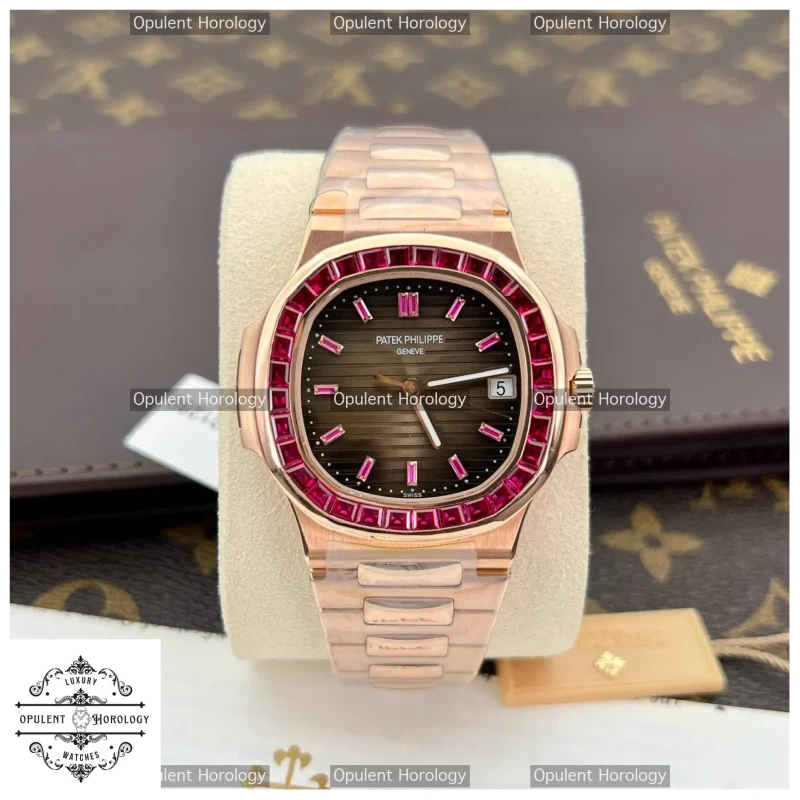Patek Philippe Nautilus 5723 Super Clone | 18K Gold Wrapped, Baguette Ruby, Cal. 324S C 40mm