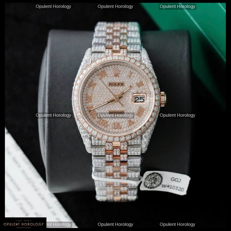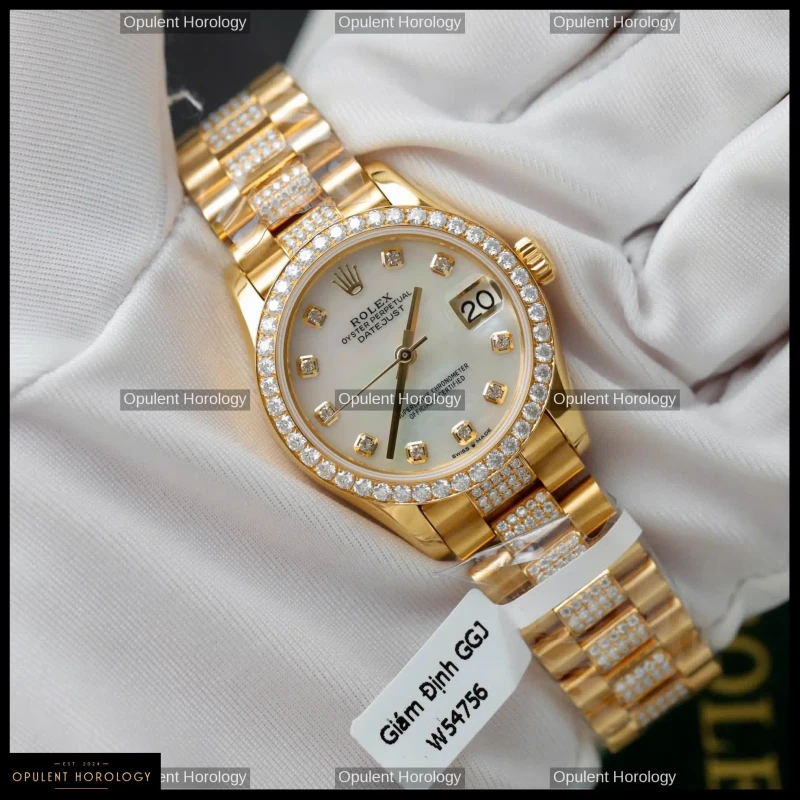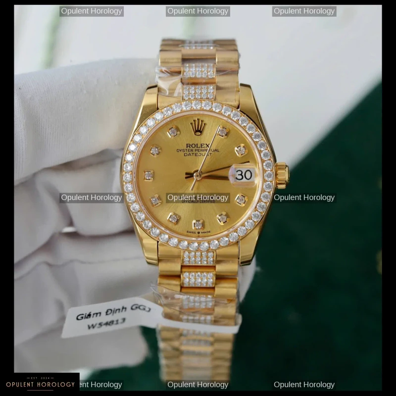 Rolex Datejust Women's Gold Dial Custom Gold Plated Moissanite 31mm - Super Clone