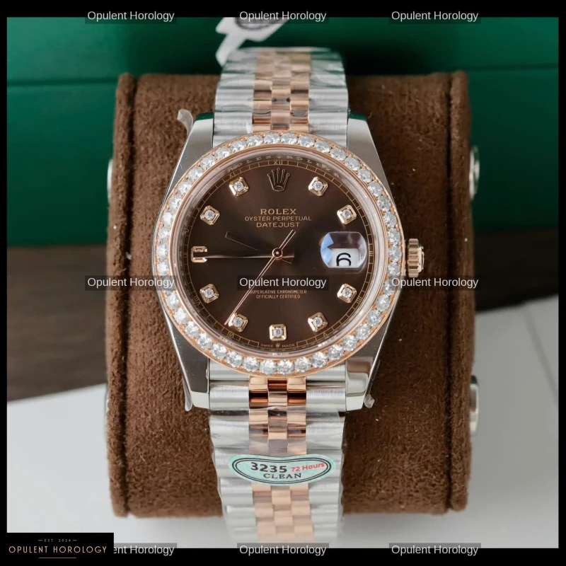 Rolex Datejust 41 Chocolate Dial Moissanite Diamond Bezel Jubilee